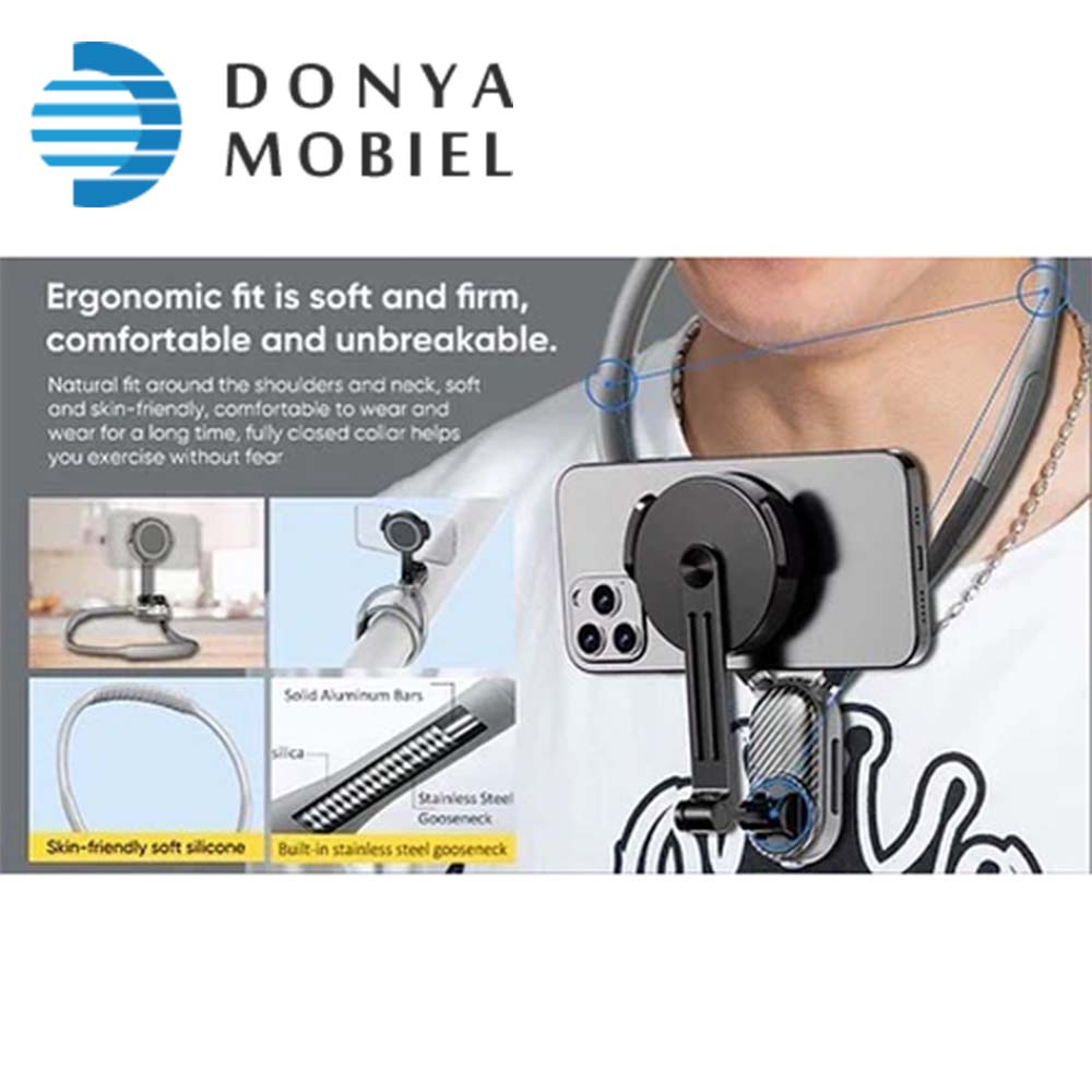 هولدر گردنی موبایل جیماری JMARY MG02 یک ابزار هوشمند و کاربردی است که امکان نگهداری گوشی موبایل را به صورت راحت و بدون استفاده از دست فراهم میکند. این هولدر با طراحی ارگونومیک و قابل تنظیم، گزینهای ایدهآل برای تماشای ویدیو، مکالمه ویدئویی، مطالعه، و تولید محتوا در شرایطی است که دستهای شما آزاد باشند.