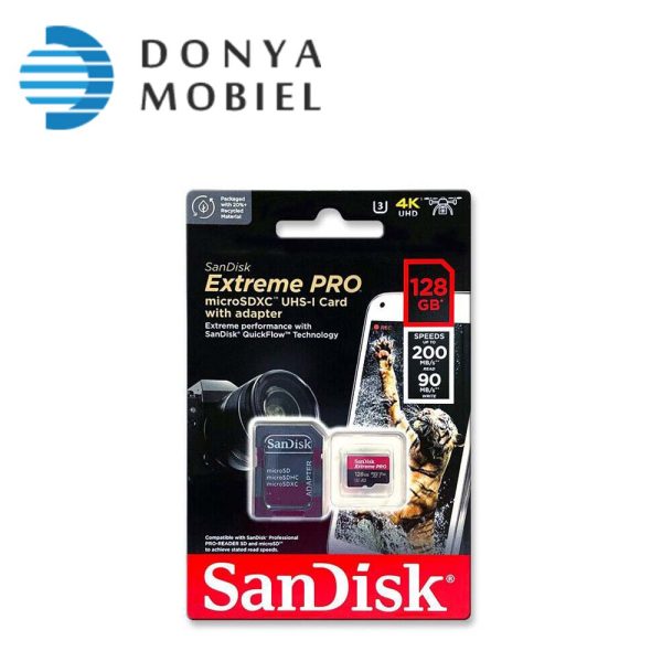 کارت حافظه microSDسندیسک مدل Sandisk 128GB Extreme PRO UHS-I U3 microSDXC Card 200MB/s با فرمت SDXC و با سرعت نوشتن 200 مگابایت بر ثانیه در کلاس 10 سرعت قرار دارد. کارت حافظه SanDisk 128GB Extreme Pro این توانایی را به دوربین عکاسی و یا کامپیوتر شما میدهد تا اطلاعات ذخیره شده بر روی این کارت حافطه را با سرعت 90 مگابایت بر ثانیه بخوانند. از کارت حافظه سن دیسک اس دی ایکس سی 128 گیگابایت اکستریم پرو 1333 ایکس 200 مگابایت میتوان در انواع لوازم الکترونیکی مانند دوربین های عکاسی، رکوردرها، MP3 Player ها و غیره استفاده کرد.